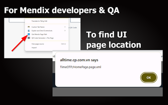 "Page location for Mendix" ist ein kostenloses Chrome-Add-on, das speziell für Mendix-Entwickler und QA-Ingenieure entwickelt wurde. Diese Erweiterung erleichtert den Entwicklungsworkflow, indem sie es ermöglicht, den genauen Dateipfad einer Seite im Mendix Studio Pro Modellierer sofort abzurufen. Mit der Funktion "Get Mendix Page Path" können Nutzer einfach mit der rechten Maustaste auf eine Seite klicken, um die vollständige Pfadangabe zu erhalten.